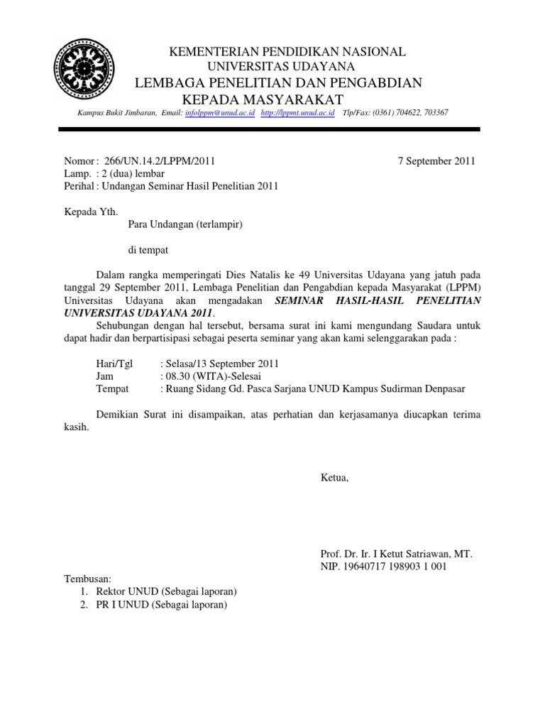 Contoh yang sederhana, tapi kami berjanjian kedepan akan melengkapi artikel ini dengan contoh proposal beserta contoh susunan acara seminarnya. Contoh surat undangan seminar ptk ( penelitian tindakan kelas ) dapat anda download pada link dibawah. Surat yang profesional dan sopan serta menarik memungkinkan anda mendapat respon baik dari setiap anggota seminar yang anda undang dan memungkinkan mereka datang pada acara seminar anda. Contoh surat undangan resmi kementerian. Contoh surat permohonan narasumber untuk berbagai kepentingan sebagai referensi membuat surat permohonan narasumber yang baik dan profesional. 15 contoh surat undangan resmi tidak resmi rapat pengajian dll di 2020 undangan surat bersyukur. Undangan dibuat dengan tujuan untuk mendatangkan orang tertentu pada suatu kegiatan. Demikian surat undangan seminar resmi dinas koperasi dan umkm bali ini kami sampaikan, atas perhatiannya kami ucapkan terima kasih. Silahkan download atau copy bahasa kalimat serta format contoh surat berikut ini. Demikian surat permohonan dari kami, atas partisipasinya kami ucapkan terima kasih. Mohon maaf apabila banyak kesalahan dalam penulisan artikel atau informasi tersebut yang ada kaitannya dengan. Contoh surat dinas undangan, contoh surat dinas undangan untuk narasumber, contoh surat dinas undangan tema osis, contoh surat dinas pendidikan, contoh surat dinas resmi, contoh surat dinas undangan, contoh surat dinas perusahaan. Word document di bawah ini dapat digunakan untuk mengundang sesorang untuk menghadiri acara kegiatan seminar.